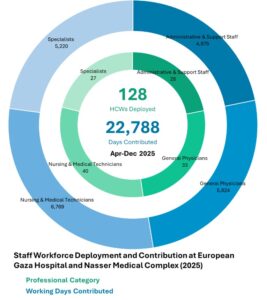 On 14 May 2025, airstrikes and artillery shelling partially destroyed buildings near European Gaza Hospital, blocking access and forcing medical, technical, and administrative staff to evacuate due to security risks. Patients were transferred to other hospitals, and by 24 May 2025, health authorities announced the hospital’s complete closure. As a result, oncology services supported through this program were relocated to Nasser Medical Complex, which continues to serve as a key referral facility for cancer patients in Gaza.
